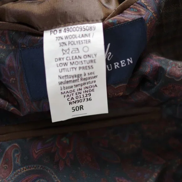 Ralph by Ralph Lauren Wool Blend Checked Brown Blue Men Sport Coat Size:50RRalph by Ralph Lauren Wool Blend Checked Brown Blue Men Sport Coat Size:50RShoulder 22"Chest 28"Length 31"Sleeve 26"70% wool, 30% polyesterExcellent!! Like New!
