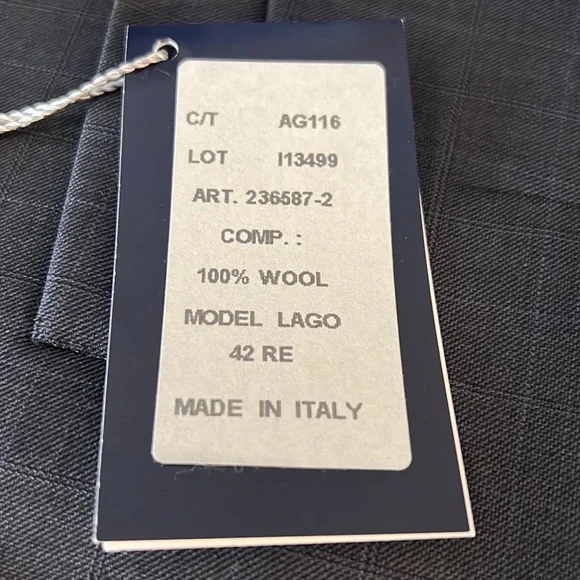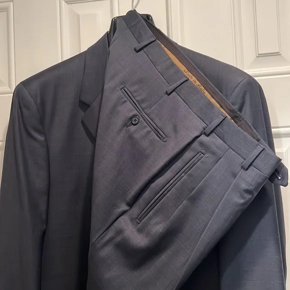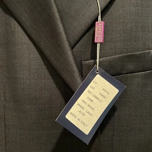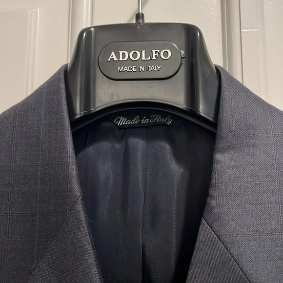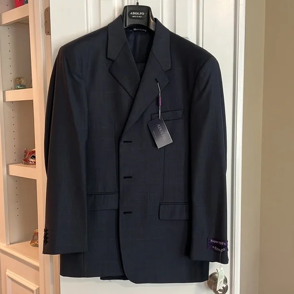 NWT Blue Adolfo two piece suit 42 Regular Three button jacketUnhemmed pantsMade in Italy