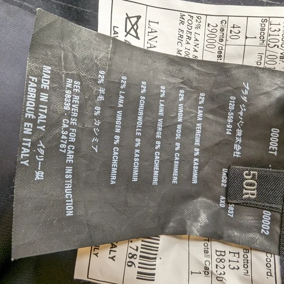 Like New wool cashmere blazer.Guaranteed Authentic.made in Italy chest 42"waist 40"sleeves from shoulder seam to cuff 24"shoulder to shoulder 19"length down back from bottom of collar 30"The materials are absolutely magnificent. the wool/cashmere fabric feels just like heaven. single vented.fully lined Viscose/CuproAll season weight. Promises to be as comfortable as it is stunningly handsome!You will be thrilled with the way you look and feel in this masterpiece!Cheers,DrewS