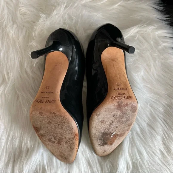 PRODUCT DETAILS• About the brand: Born in London in the early 90´s, Jimmy Choo was one of the first luxury brands to bring shoes and handbags to the red carpet. A playful sense of glamour and exceptional Italian craftsmanship separate Jimmy Choo from the rest, in Hollywood and beyond.• Please note: Size selections are European. For US conversions please reference size chart.• Jimmy Choo. A playful sense of glamour.• Made in Italy• 85 Patent Pump in black patent leather with a chic design• Lightly padded leather insole• Smooth leather sole• 3.25in heel• 100% AUTHENTIC