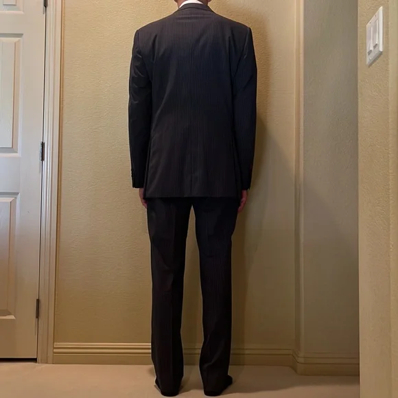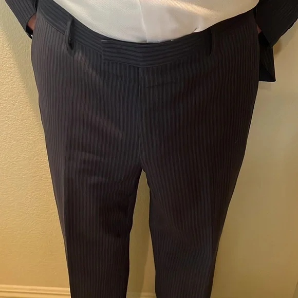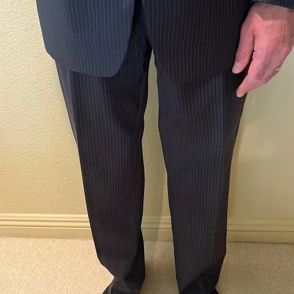 Navy suit with pinstripes 44L good condition