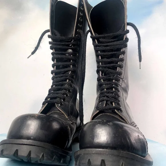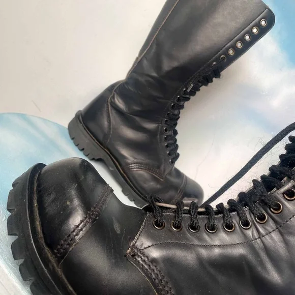 Real-deal old skool punk rock made-in-England steel toe s#*! kicker boots from Getta Grip, a line from Doc Martens. Excellent vintage condition Men’s size 5=women’s 7.5