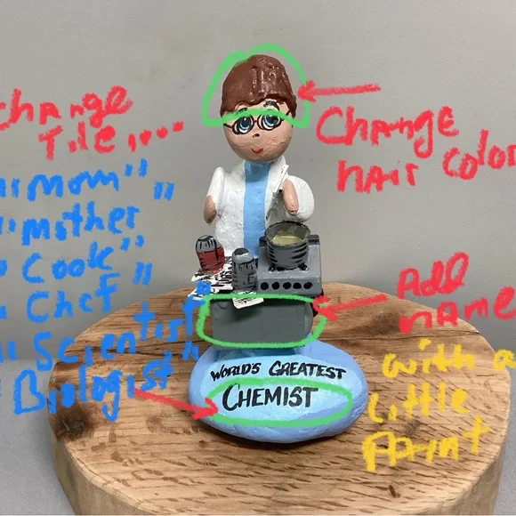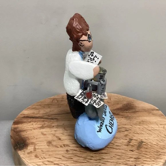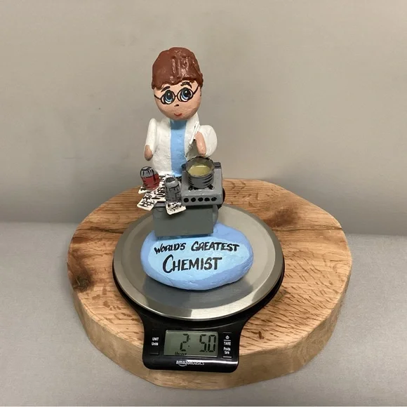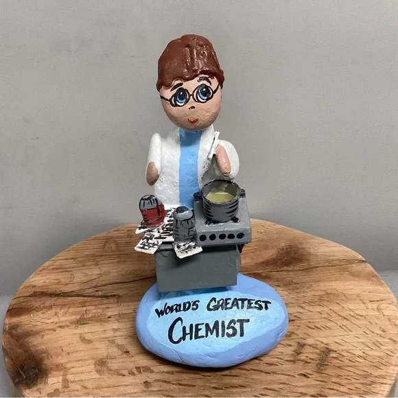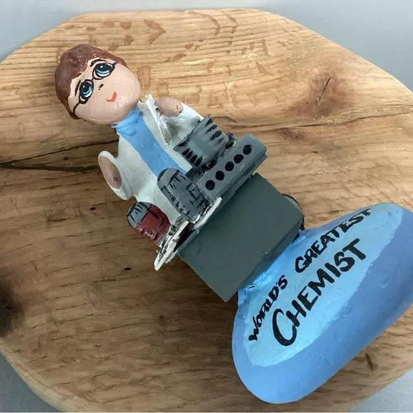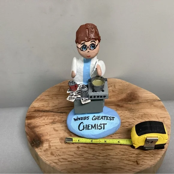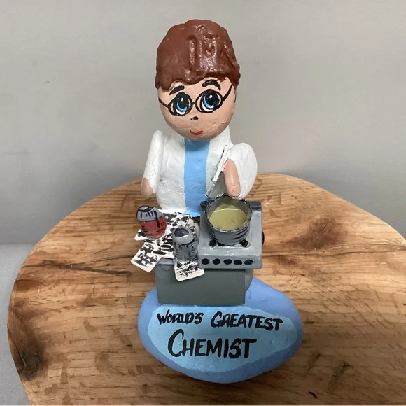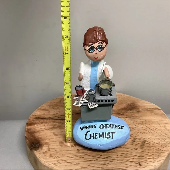 Check out this one of a kind gift idea, Vintage but Customizable, see pics.This is a Handcrafted “Rock” Women so to speak.She is crafted using real rocks, small pieces of wood, clay for filler, glue for fastening and for the pot ingredients and then Hand Painted.Note:Even though it currently says “World’s Greatest Chemist” it can very easily be changed as follow:World’s Greatest……MomMotherDaughterChefCookScientistBiologist Lab TeacherOther…..You can also add a name, see name plate in one of the pics, I painted over the name that was on here.And you can change her Hair color, all very easily with some little craft paints from Walmart.This is a very gently used item that was signed and dated at the base by someone, it was 2004, and the back side of the base also had the gifter’s name’s on it, all easily painted over to make it ready for a new home.This item is very unique, well crafted and all the hard work has been done for you, just customize it for that special someone in your life. Please see all pictures attached for details, size, weight and condition.Tags: Vintage Rock Rocks Women Lady Ladies Gift Home Office School Mom Mother Wood Handmade Shabby Chic Boho Bohemian