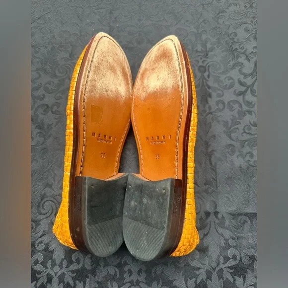 Marni Woven Leather Loafers size 9 (ES 39)Used only a few times Product Features• Fits true to size• Moc toe• Slip on• Basketweave styling• Logo detailing at side of heel• 0.5" heel• Leather upper, lining, and sole• Made in Spain