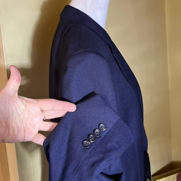 Look fantastic while feeling cozy thanks to the lightweight stretch wool. BONOBOS Lanificio Comero FlexWoven in Biella Italy Exclusively for BonobosSize:44RSlim-FitSuit Jacket / Blazer Fabric/. Wool + Cotton + ElasteneYEAR ROUND comfort Solid Suit JacketJacket features notch lapelFlap pockets 2 button single breastedFully lined interiorInterior Zip & openpockets Non functional buttons at cuff Double vent MSRP:$348NEWI ship daily.Thanks!