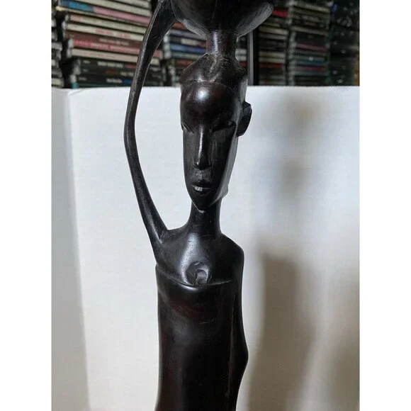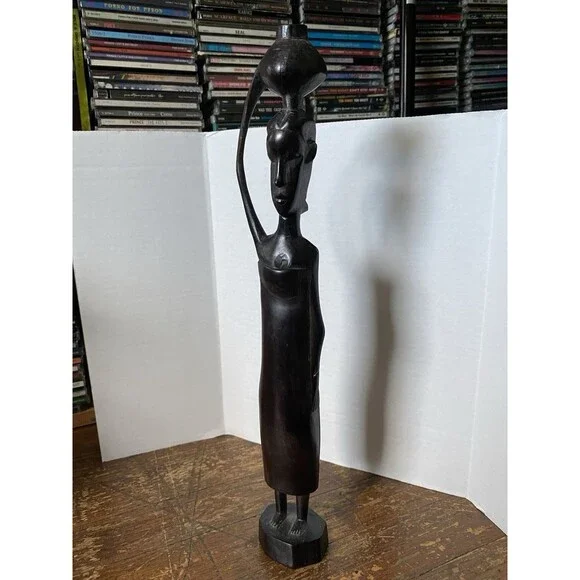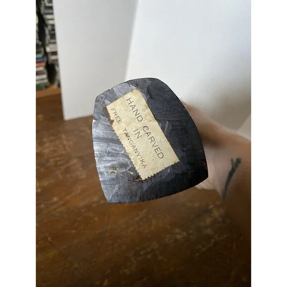 This lot of 3 vintage African tribal folk art hand-carved wooden figurines is a unique addition to any collection. Each figurine is crafted with care and attention to detail, showcasing the rich culture and heritage of African artistry. These handmade pieces are sure to bring a touch of history and authenticity to any space, making them a valuable and cherished item for collectors or art enthusiasts.