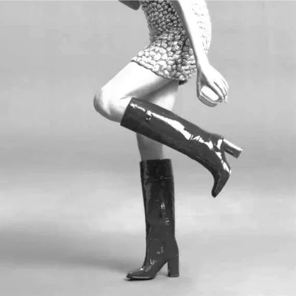 NWOB Diane von Furstenberg Yvonne Crinkle Patent Leather Tall Boots