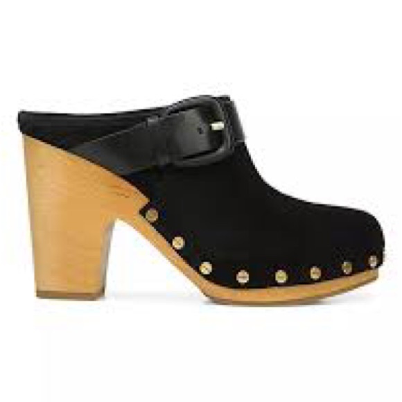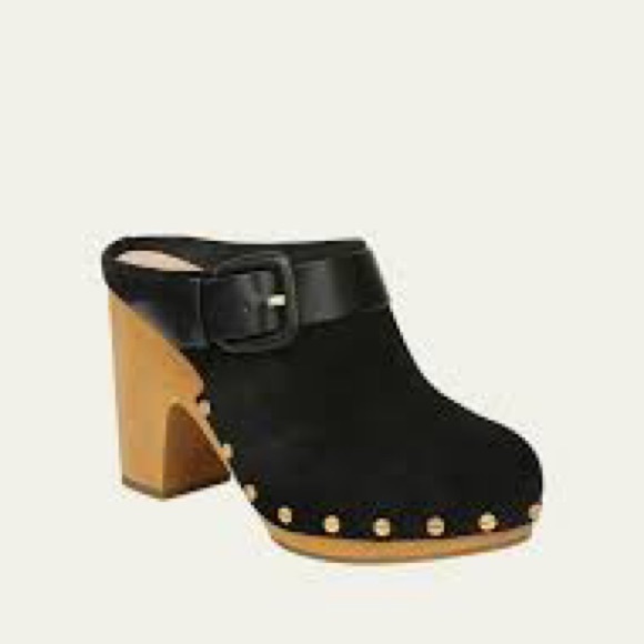 Veronica Beard Dacey Buckle Black Suede Clogs Size 8NEW without original boxRuns small; order 1/2 size up.Give your look a cool ´70s vibe with this suede clog designed with...