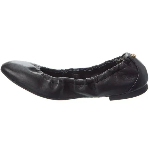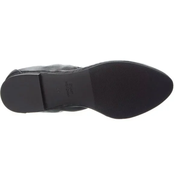 NWOB Stuart Weitzman Gabby Scrunch Rivet Black Leather Flat Ballet Shoe