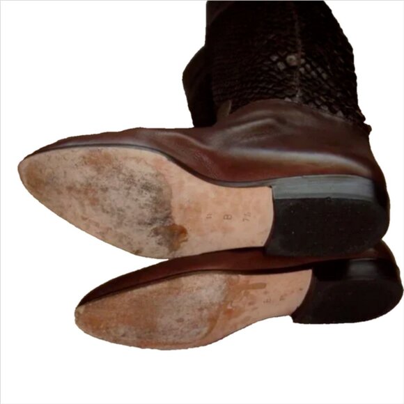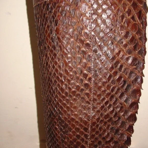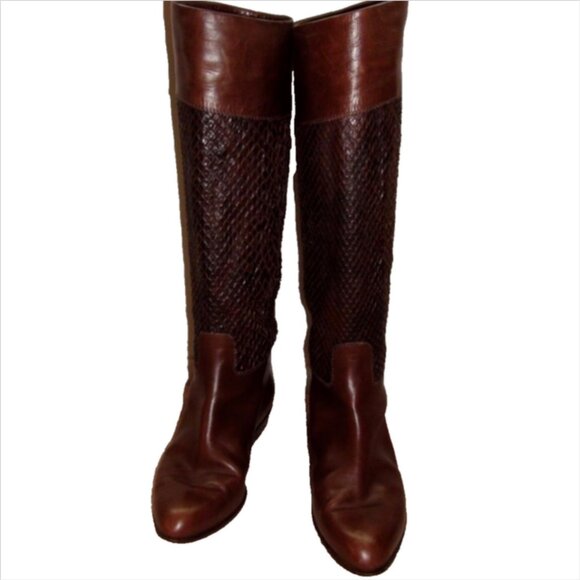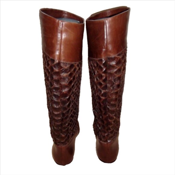 Via Spiga Snakeskin Leather Equestrian Tall Riding Boots 7.5 PreownedSnakeskin espresso leather shafts, with cocoa-brown leather foot and cuff. Pull On Style Leather-lined interior. High-end, High-quality pair of boots. Made in Italy A local shoe maker informed us they are authentic python.We take no responsibility for their opinion please confirm with the photosMeasurements are approxTotal height: 15.5 inchesHeight of heel: 7/8 inchCircumference around top of boot shaft: 13 inchesCustomer Service Policy: We are not an expert on everything we sell, so some of our knowledge may be limited. As for shoes and clothing on manufactures overall fit Prior to sending, photos are taken of item with shipping label to represent the item purchased and shipped