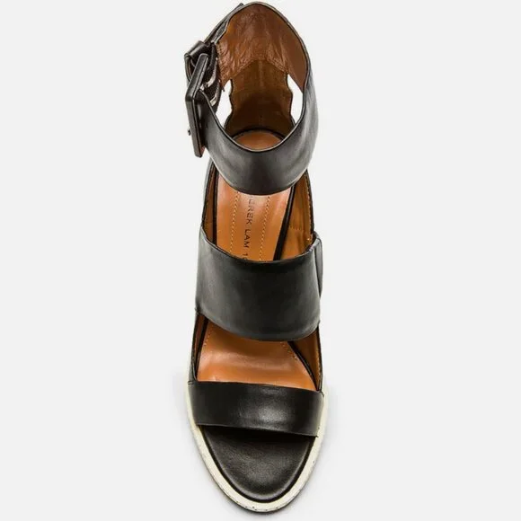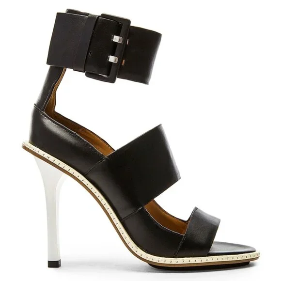 10 Crosby Derek Lam Lila Leather Open Toe Heels Size 9 NIBStyle # C913005BCOLOR BLACK CALFAdd a dose of dramatic flair to your evening wardrobe with these striking black Lila sandals from 10 Crosby Derek Lam. Adorned with a buckled ankle strap and contrasting heel, this pair boasts statement style. Complete the look with an embellished clutch and sweeping up-do.Leather upper with rubber soleHeel measures approx 4" HBuckle closureImportedWe are not an expert on everything we sell, so some of our knowledge may be limited. As for manufactures overall fit Items are retail store purchases and may have been handled or tried on by store customers Prior to sending, photos are taken of item with shipping label and a zip tie tag attached to represent the item purchased and shipped