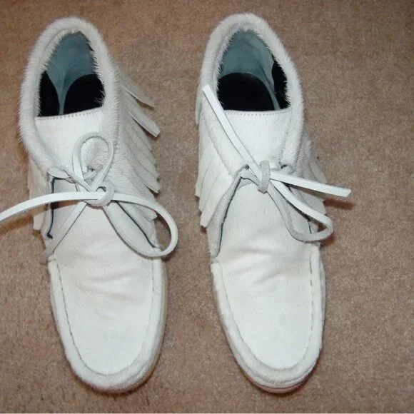 Derek Lam 10 Crosby Eden Fringe Calf Hair Lace Up Boots Size 10New without original boxFringes around opening, leather lace-up, and top stitchRound/almond toeStacked and wood & rubber wedge heel, leather insole, and rubber outsole100% Calf Hair upper / 100% Rubber soleHeel Height approx 2"ImportedWe are not an expert on everything we sell, so some of our knowledge may be limited. As for manufactures overall fit Items are retail store purchases and may have been handled or tried on by store customers Prior to sending, photos are taken of item with shipping label and a zip tie tag attached to represent the item purchased and shipped