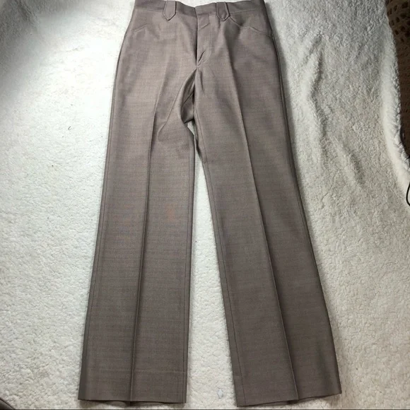 Mesquite by Niver VINTAGE small tan 3 piece mens suit, size 28 waist. Coat is lined with a silky tan color & has arrow stitched type design on front & back, vest is lined with...