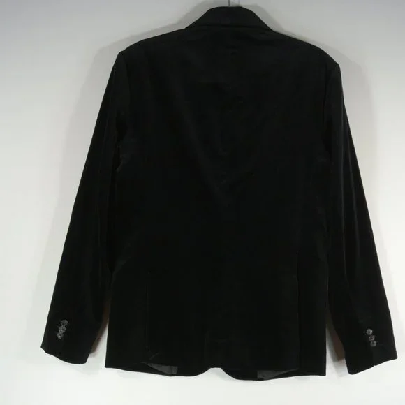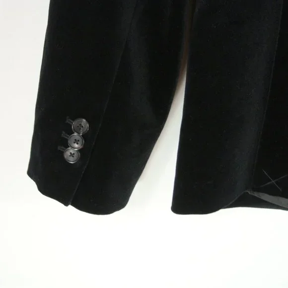 Brand new without tagSize: SBlackShoulder to shoulder:17"Chest:20"Length from shoulder:28"Sleeves:26"Hem:23" acrosstwo buttons front closurelined with polyesterCotton blend shellVelvet fabricDry clean