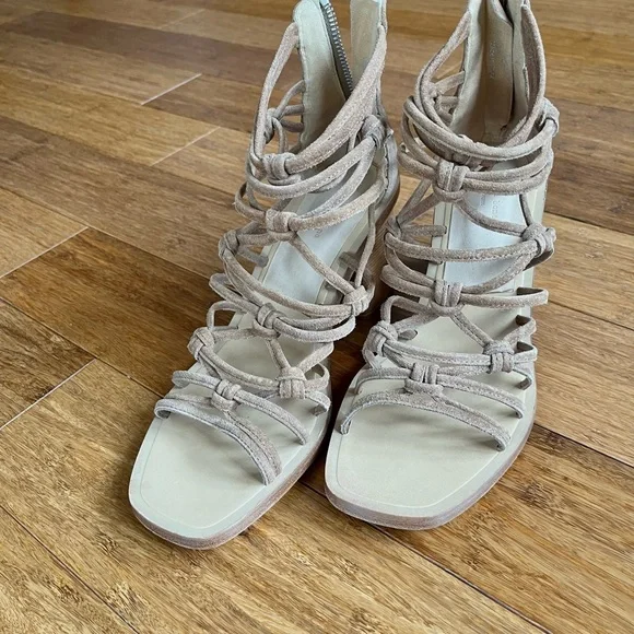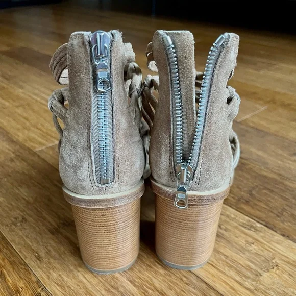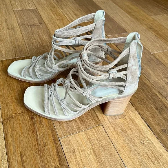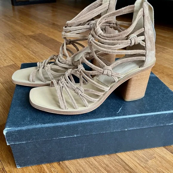 Beige suede strappy sandalsMid block heelExcellent condition - worn only onceComes with original box & dust bag