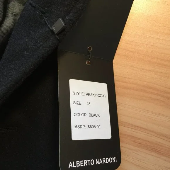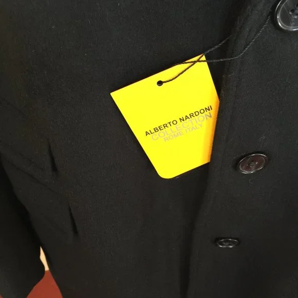 Alberto Nardoni Black Wool Blend Tuxedo Coat/Topcoat 48 NWT