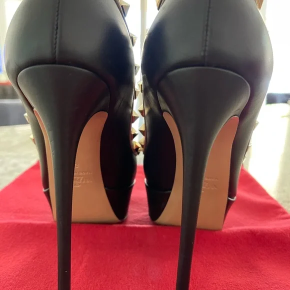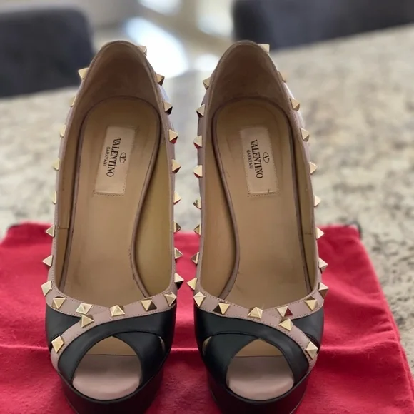 Beautiful Valentino Rock Studded Platform Pump! Dark navy blue in color with beige and gold accent. Gently worn three times. I’m very good shape. Comes with dust bag.