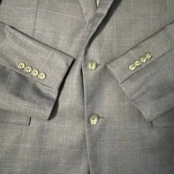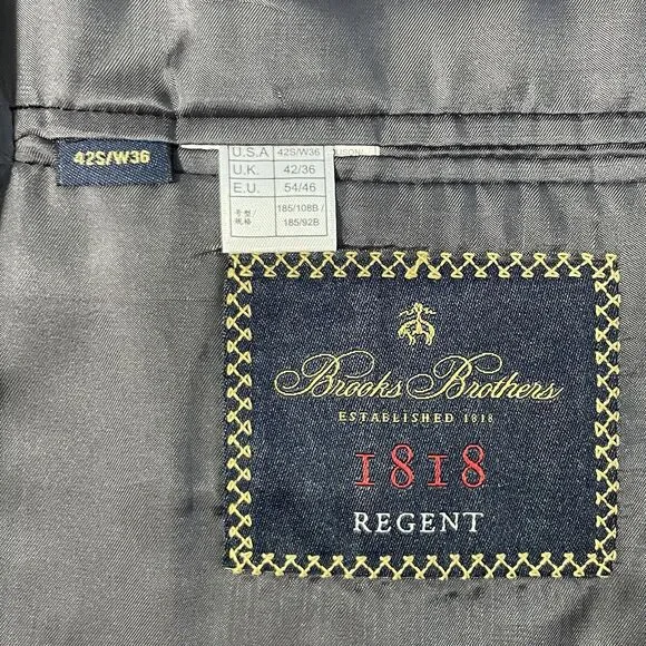 NEW Brooks Brothers E.Thomas Modern Suit Jacket USA Plaid Navy Blue Size 42R MenNew without tags. Compare measurements to a similar garment you currently own prior to purchase. See photos.No returns due to sizing and/or not fitting as measurements are provided. Refer to measurements prior to purchase.Measurements-flat lay(inches):Chest pit-to-pit: 21Shoulder to shoulder: 18Sleeves(shoulder to seam to wrist): 24Length(rear neck collar seam to hem): 29.5New Without Tags!If you have any issues with your order, please contact me directly and I will respond to you as soon as possible. My goal is to always provide outstanding customer service.Feel free to ask any questions!