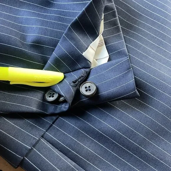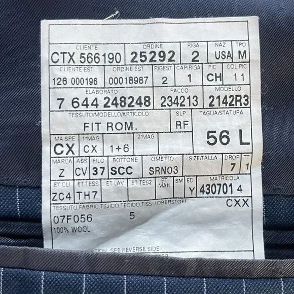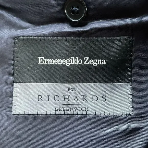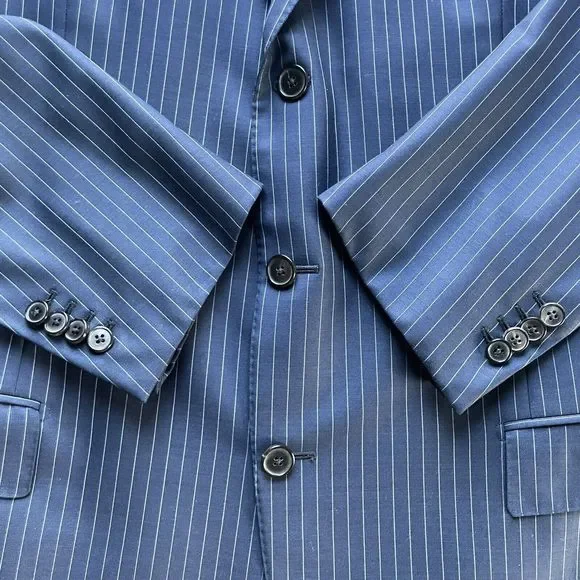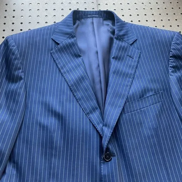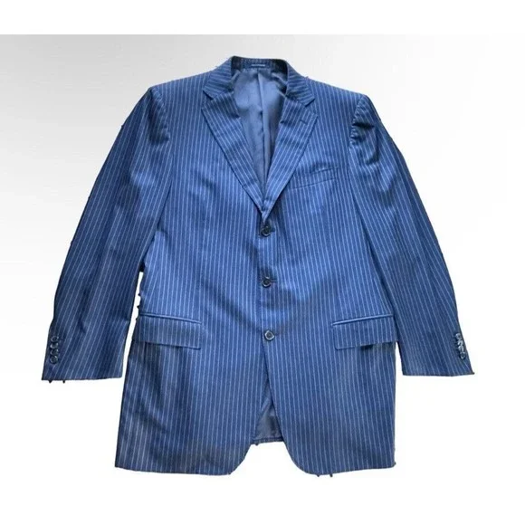 Ermenegildo Zegna Su Misura 15MILMIL15 Modern Suit Jacket Striped Navy Blue 46L Men Excellent condition no holes, rips, or stains. Compare measurements to a similar garment you currently own. See photos. Measurements: Chest(pit-to-pit): 23in Shoulder seam to shoulder seam: 19 Sleeves(shoulder seam to wrist): 25 Length(back neck collar seam to hem): 32.5