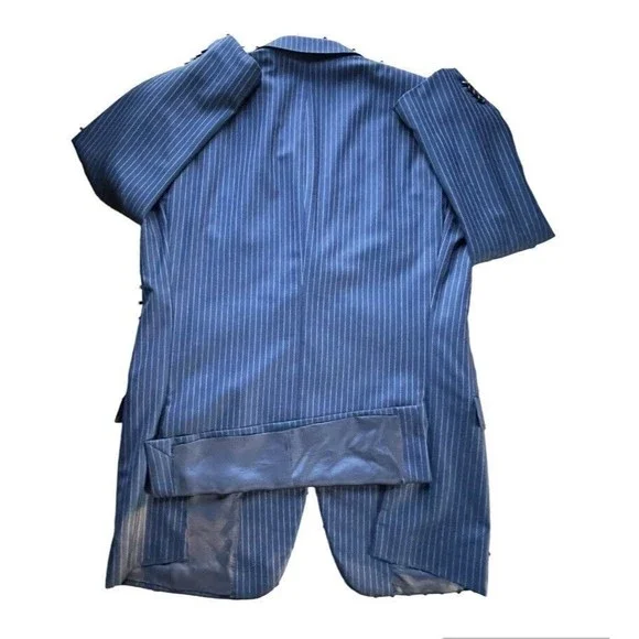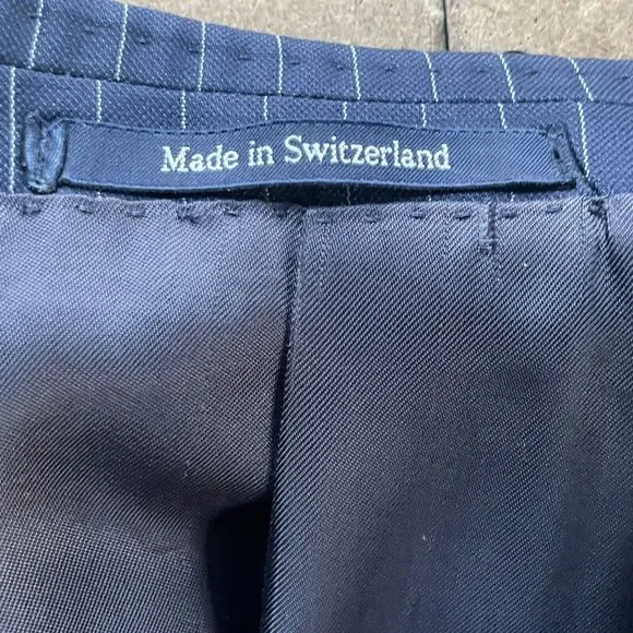 Ermenegildo Zegna Su Misura 15MILMIL15 Modern Suit Jacket Striped Navy Blue 46L Men Excellent condition no holes, rips, or stains. Compare measurements to a similar garment you...