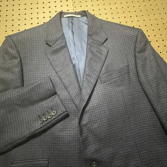 Hickey Freeman Bespoke Cashmere Sport Coat USA Mini Plaid Navy Size 43 L Men