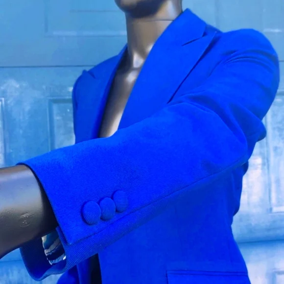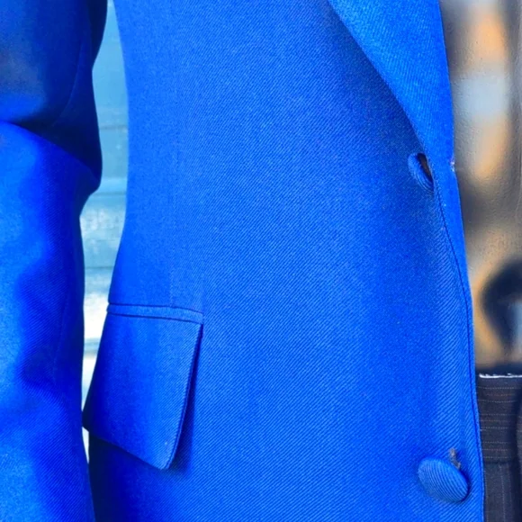 BESPOKE: Men´s Hand Tailored "BESPOKE" Luxury Blue Blazer* Crazy Cool Floral Interior* (2) Button Closure (Cloth)* Razor Sharp cut on this blazer (Lapel/Hips)*. Handsome* Mad Wide Lapels* Slant Hip Pockets* Exact Measurements* Shoulder to Shoulder 18"* Armpit to Armpit 19"* Sleeve Length 26"* Jacket Length 31´Bespoke is not exactly a new term, but it seems to be gaining in popularity. It means the opposite of off-the-rack. Bespoke clothing is custom-made clothing. It is not made to measure, as featured by many good clothing vendors. A made-to-measure item is a standard one customized at the factory in certain measurements and details. Bespoke is made from scratch to your specifications. I have no idea what the hell a bespoke cocktail is unless it’s when a bartender makes something to your exact order, as in “I’ll have a Bombay gin martini, straight up, with two olives, shaken for a minute and a half, just rinse the glass out with Lillet and toss it out while you chant om.“