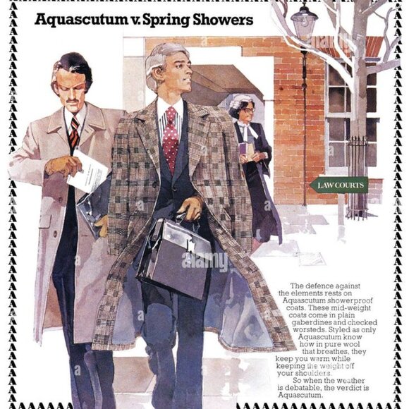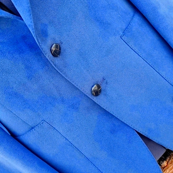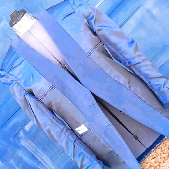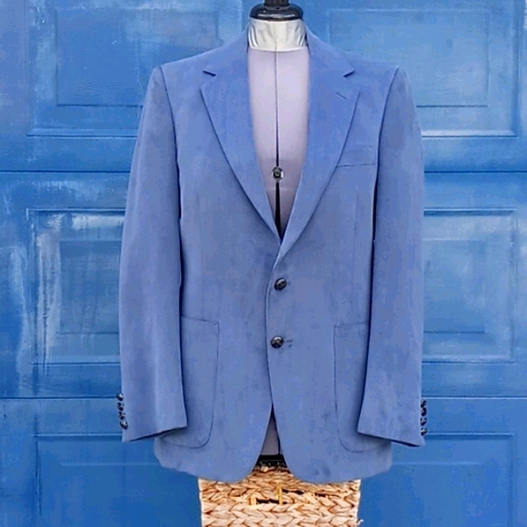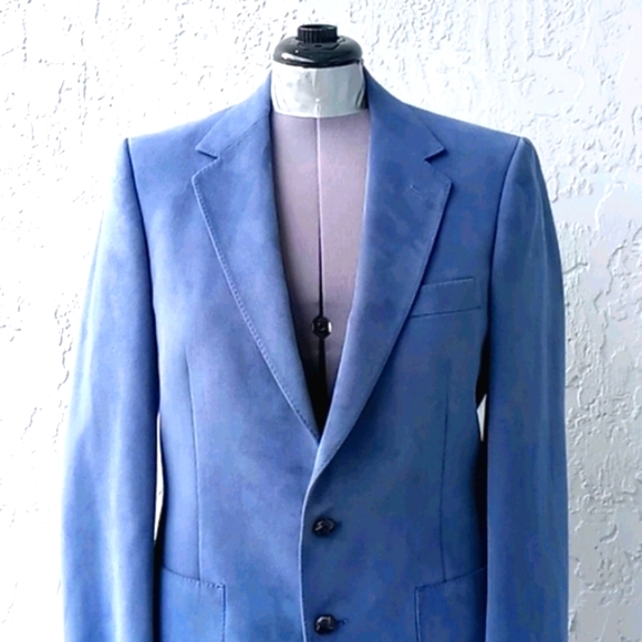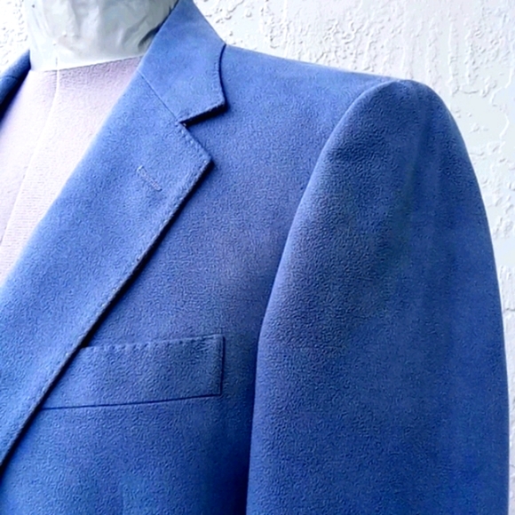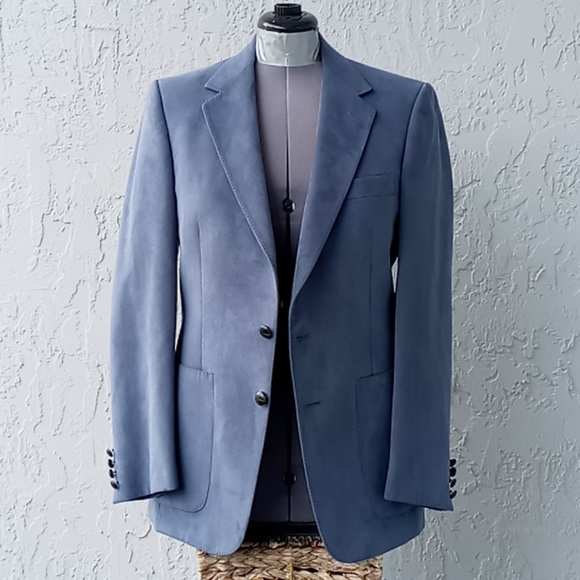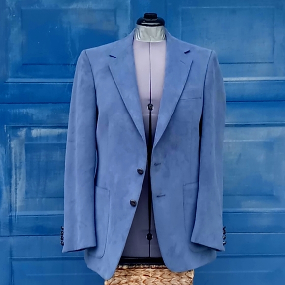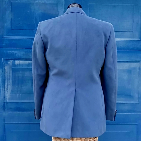 Vintage Aquascutum of London Aqua Suede Blazer Sport CoatAQUASCUTUM OF LONDON. If you know the finest in English Menswear, you know the exclusive Aquascutum label. This Men’s “Aqua Suede” fabric jacket with two leather button closures. Beautiful hand-tailored details. Dry cleaned and ready to wearDeep Aqua Suede Dinner Jacket Color -Grey with a hint of Blue, Teal Excellent ConditionExact Measurements:Shoulder to Shoulder 18.5"Armpit to Armpit: 20"Sleeve Length 26.5"Jacket Length 32"Aquascutum of London, founded in 1851, is a British fashion brand renowned for its innovative waterproof clothing, particularly its trench coats. Initially a men´s tailor, Aquascutum developed a revolutionary waterproof wool fabric and gained recognition for its quality and style, eventually earning a Royal Warrant. The brand´s trench coats became popular with the military in both World Wars and later with Hollywood stars and the public, solidifying its iconic statusKey Aspects of Aquascutum´s Men´s Clothing History:Early Innovations:Founded by John Emary, Aquascutum´s initial focus was on creating practical and stylish menswear, particularly through its groundbreaking waterproof wool fabric. Trench Coat Origins:Aquascutum is credited with developing the trench coat, initially for military use during World War I and later adopted by civilians. Royal Patronage:The brand´s association with the British Royal Family began in 1897 with a Royal Warrant, further enhancing its prestige.