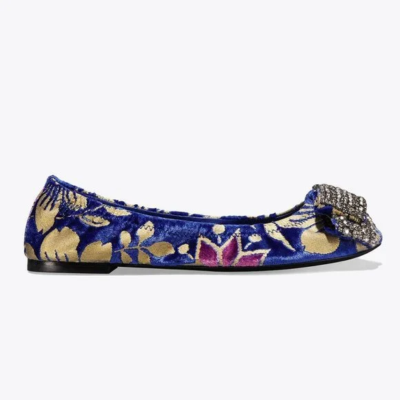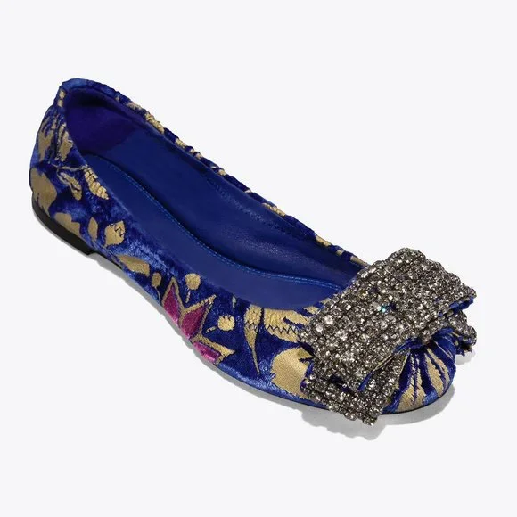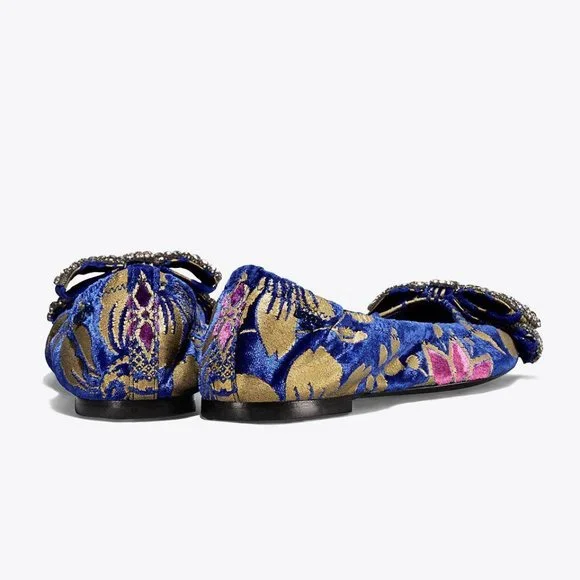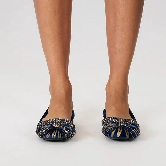 New with original box Inspired by an Edwardian coat, the Viola Embellished Bow Ballet Flat shines with its light-reflecting botanicals and faceted stones. The style is made from velvet and refined with smooth napa leather lining.- Velvet upper - Crystal embellishment - Napa leather lining- Leather sole