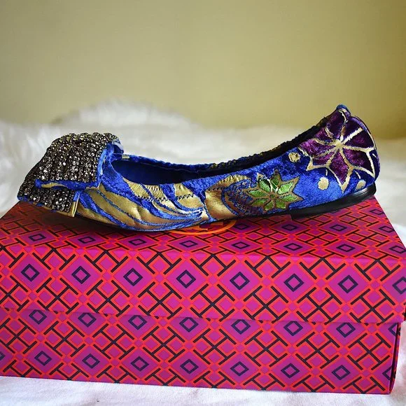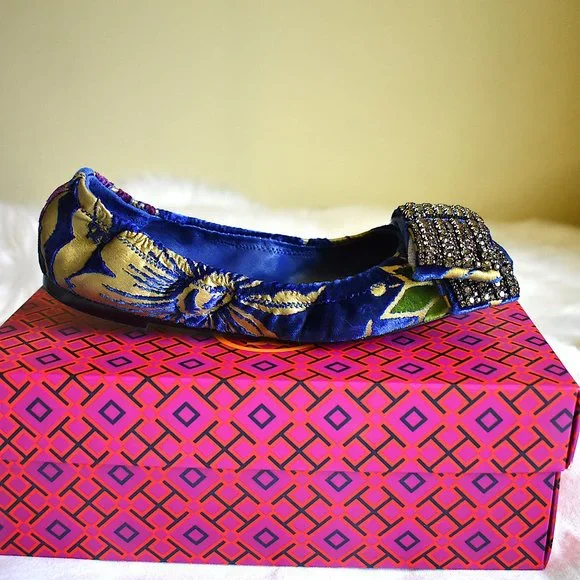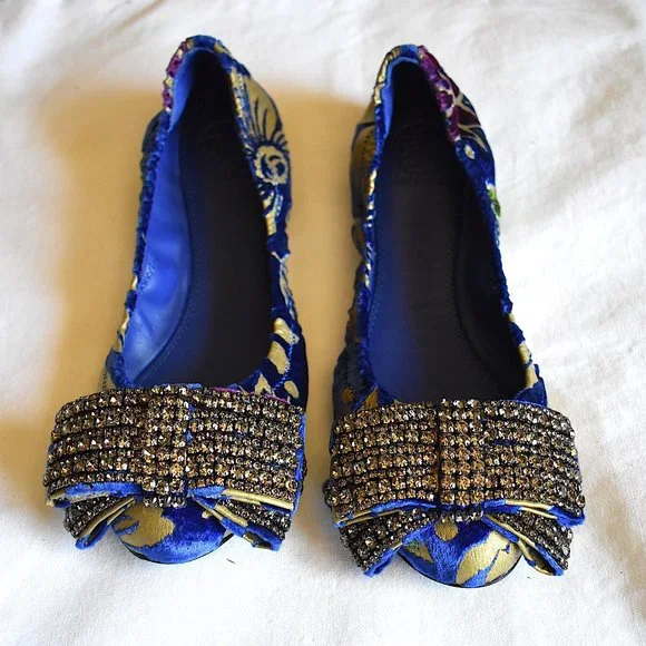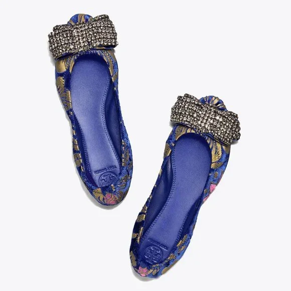 New with original box Inspired by an Edwardian coat, the Viola Embellished Bow Ballet Flat shines with its light-reflecting botanicals and faceted stones. The style is made from...