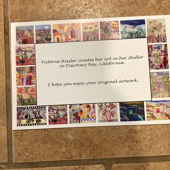 This mixed media acrylic painting combines paper clay (built up surface on flowers and apples) as well as acrylic paint, and metallic acrylic inks It is perfect for your art collection . This handmade item is made from acrylic paint clay and paint on a 12”x12” wood panel. hand painted Handmade by California artist Victoria Heisler from Discovery Bay