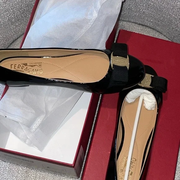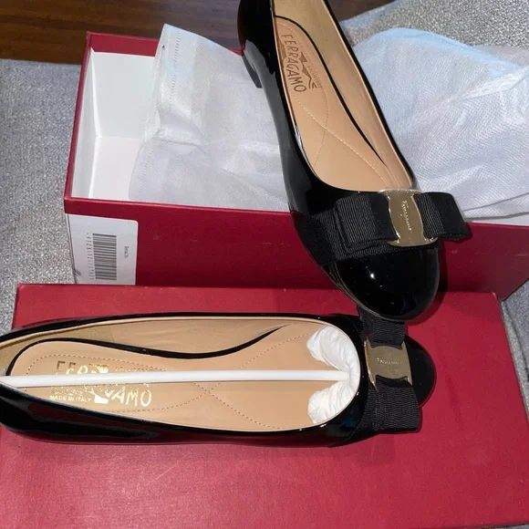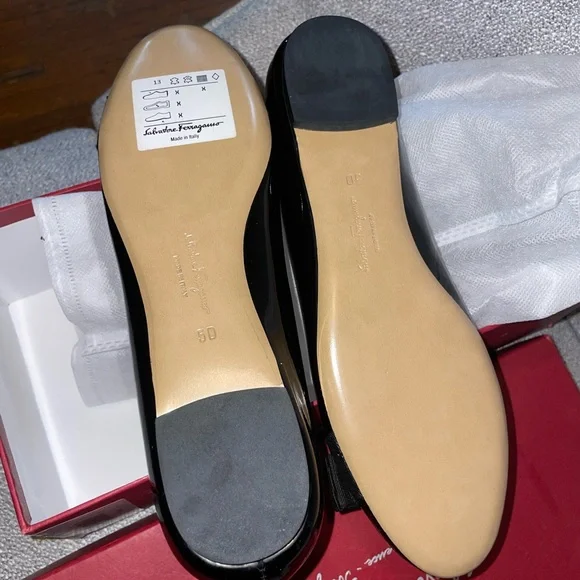 Salvatore Ferragamo Black Flats with Bow Detail