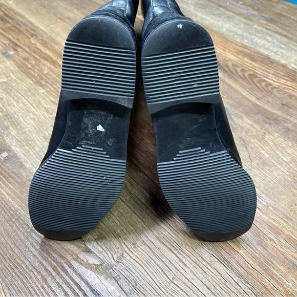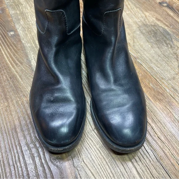 Very Good Pre-Owed Condition: No rips or tears. Normal leather wears. Minor stains on top of right boot. See last photo.