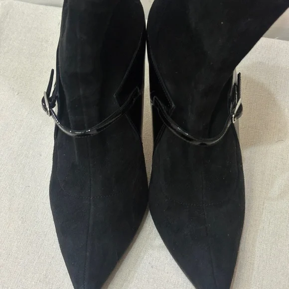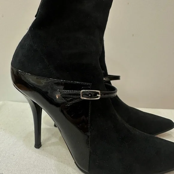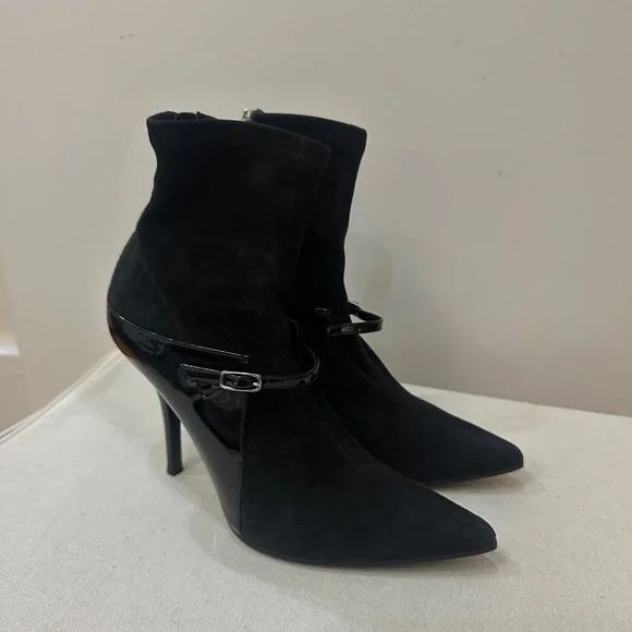 Givenchy Suede Patent buckle boot heels