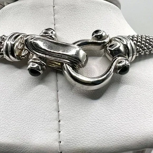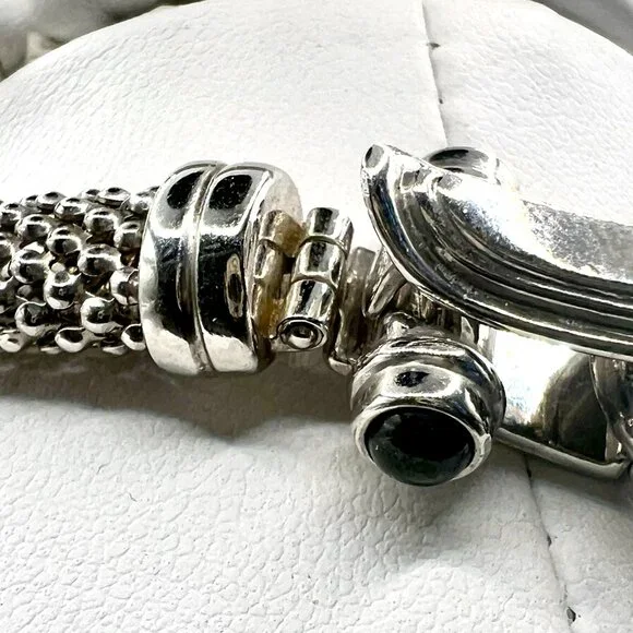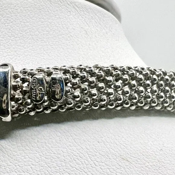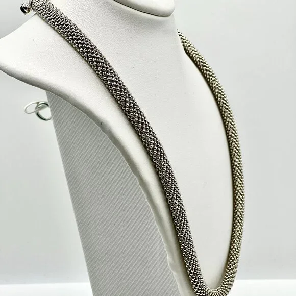 Sterling Silver & Onyx Mesh Necklace – Made in Italy18" Statement Chain