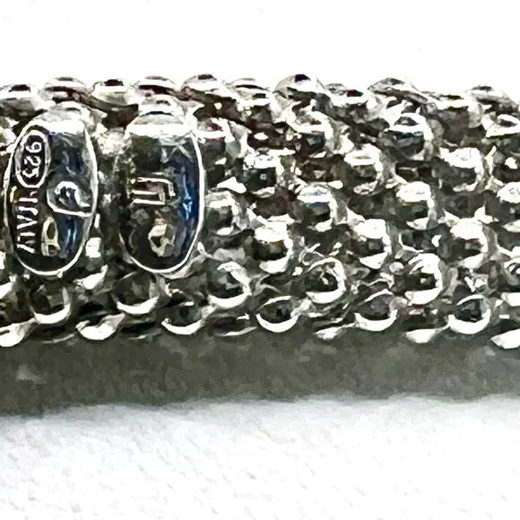 Make a bold yet refined statement with the Leslie’s Sterling Silver and Onyx Mesh Necklace, masterfully crafted in Italy from premium .925 sterling silver and accented with sleek black onyx. This luxurious 18-inch necklace features a wide 8mm mesh chain that combines modern texture with timeless design. The onyx elements bring depth and contrast, creating a powerful yet elegant look ideal for both daywear and evening sophistication.Weighing approximately 33.77 grams, this necklace offers a substantial feel without sacrificing comfort. The flexible mesh construction ensures a smooth drape along the neckline, while the radiant polish enhances the natural brilliance of sterling silver.Key Features:Material: Genuine 925 Sterling SilverStone Accent: Natural Black OnyxLength: 18 inchesWidth: 8mm Mesh ChainWeight: Approx. 33.77 gramsOrigin: Made in ItalyTexture: Polished Mesh with Stone InlayStyle: Bold, Elegant, and TimelessThis necklace is perfect as a standalone statement or layered with your favorite silver chains. With its high-quality Italian craftsmanship and striking onyx detail, it’s the kind of piece that turns heads—whether worn casually or dressed up.