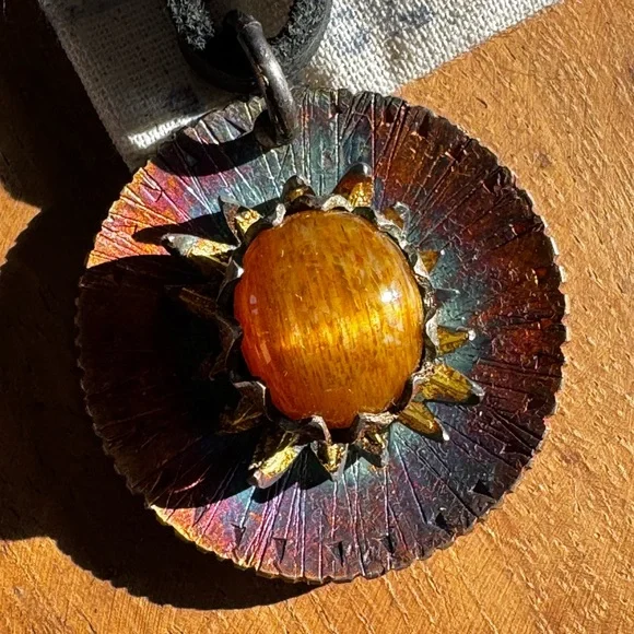 Sterling Silver Multicolor Pendant with 18k fused in and Gorgeous Sunstone