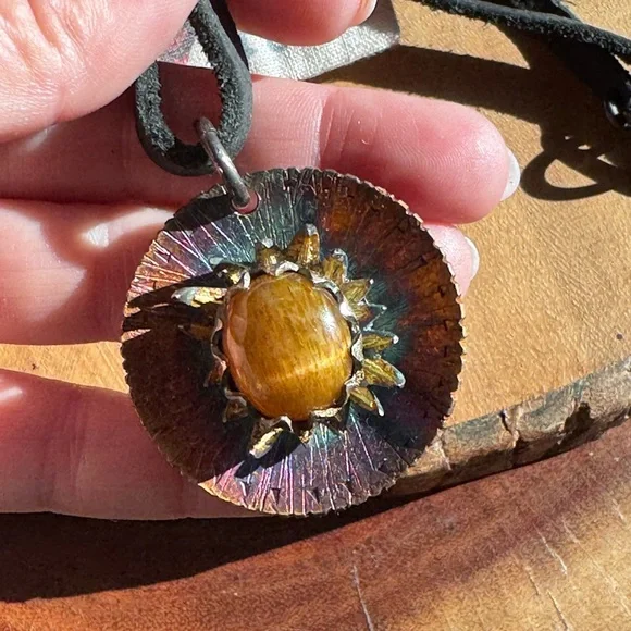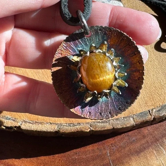 This stunning sterling pendant necklace features a vibrant multicolor design, perfect for adding a touch of elegance to any outfit. The centerpiece is a beautiful sunstone, surrounded by a unique blend of gold and brown hues. Ideal for any occasion, this piece is a must-have for your jewelry collection.