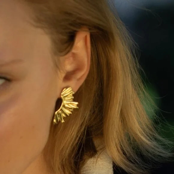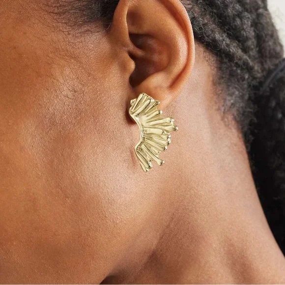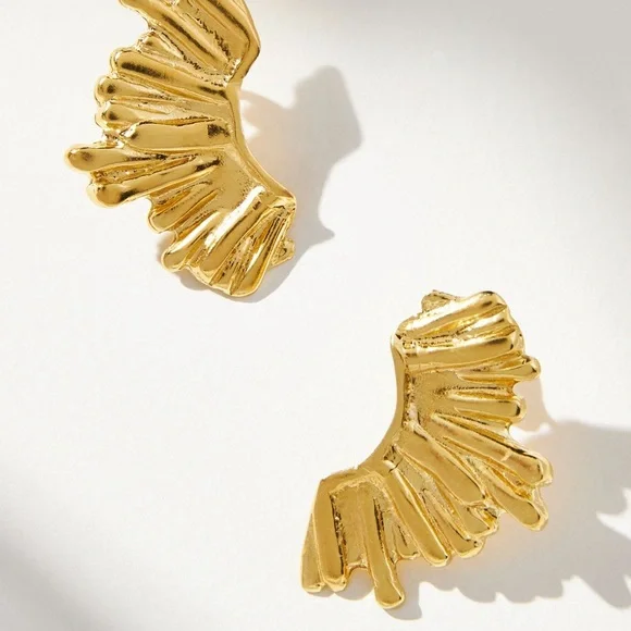 Anthropologie | YSSO The Crescent Sun Earrings 18K-24K, NEW Originally $501. Hand-carved in Greece. Made from up to 35% recyclable and natural bronze double plated with 18- and 24-karat gold.L: 2 cm W: 3.5 cmEach side is 4.2 grams.YSSO´s sculptural ´Crescent Sun´ earrings are designed to capture the "sun´s glorious rays." They´ve been crafted in Greece from lightweight, gold-plated metal that´s intricately hand-carved with grooves that glisten as they catch the light.