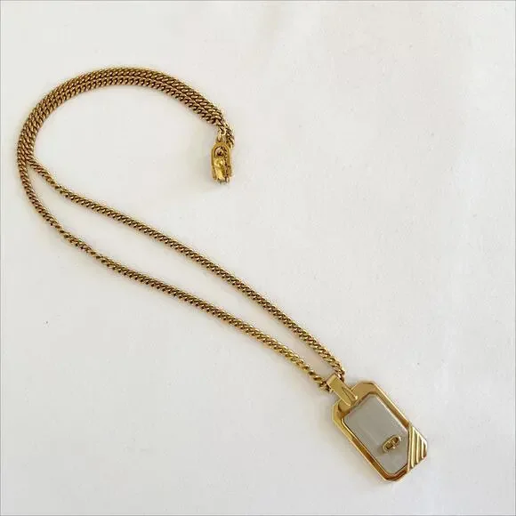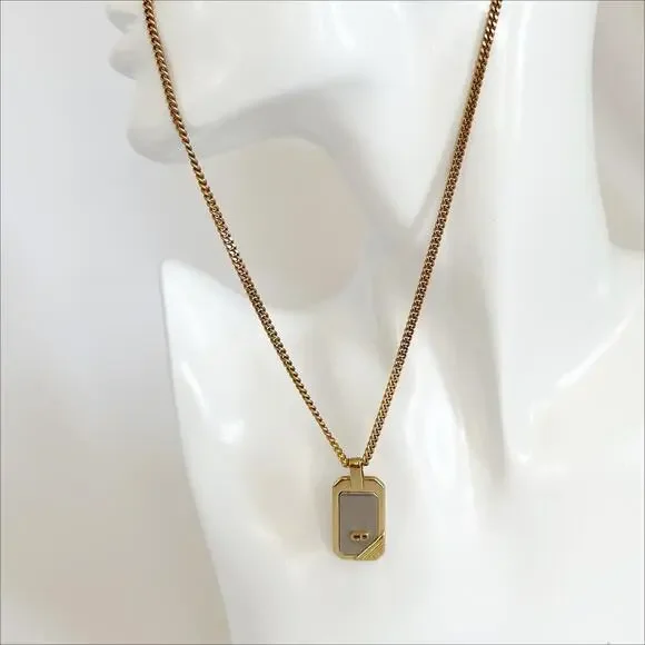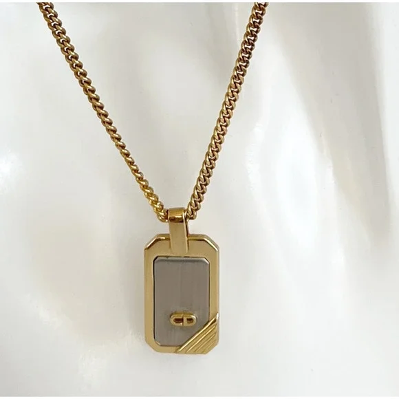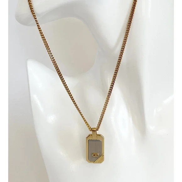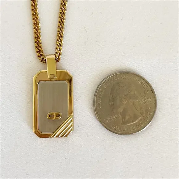 DIOR Vintage Two-Tone Dog Tag Pendant Necklace