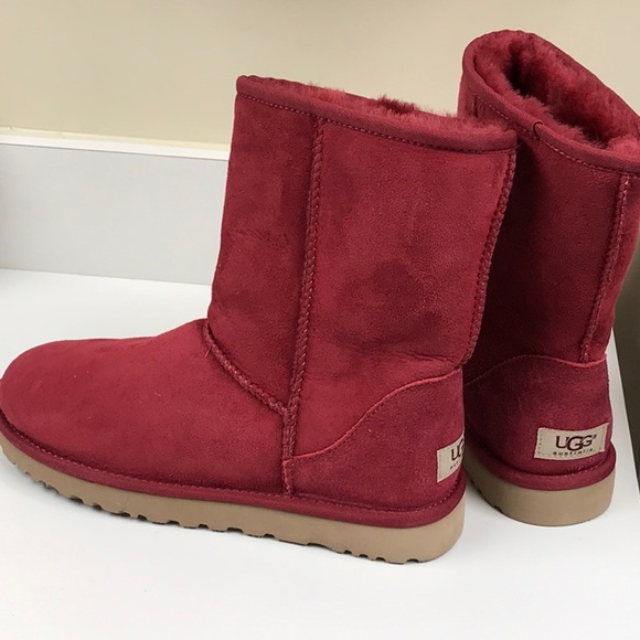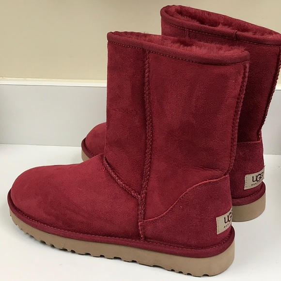Ugg Booties Beautiful Red Suede SheepskinLined Logo Never Used New