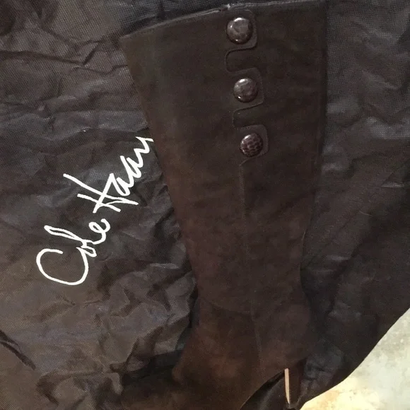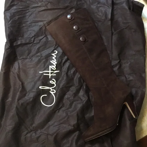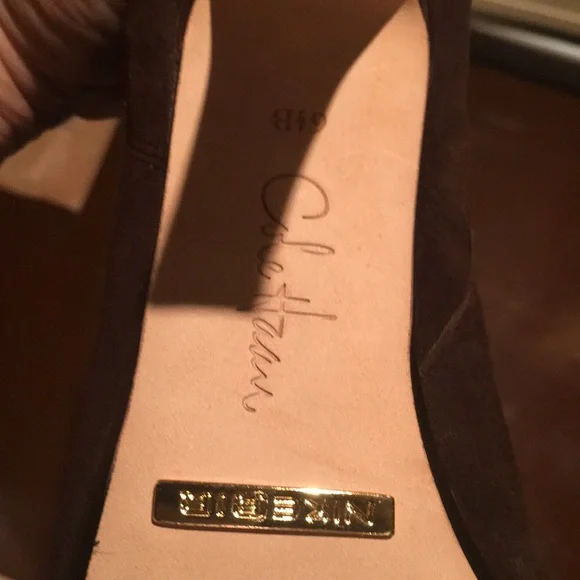 Cole Haan sz6.5 dark chocolate NWTThey feature a rounded almond toe, inner zip, outer button detail, and they have the Nike Air technology which makes them INCREDIBLY COMFORTABLE....