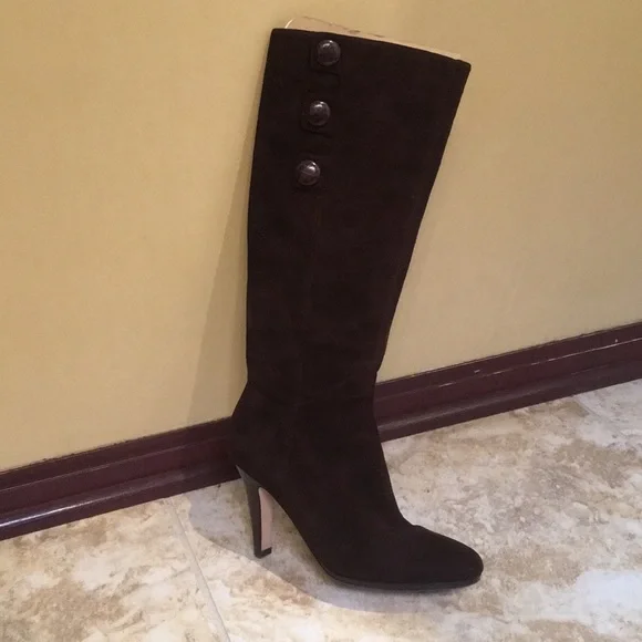 Cole Haan sz6.5 dark chocolate NWTThey feature a rounded almond toe, inner zip, outer button detail, and they have the Nike Air technology which makes them INCREDIBLY COMFORTABLE. They have a 3.5" inch heel but due to the cushioned Nike Air technology, can be worn all day with comfort.