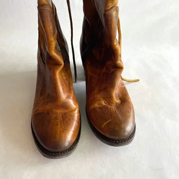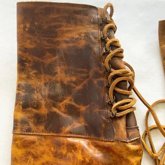 Freebird by Steven ´Rolls´ Distressed Lace Up Leather Boots Size 9 Cognac $395