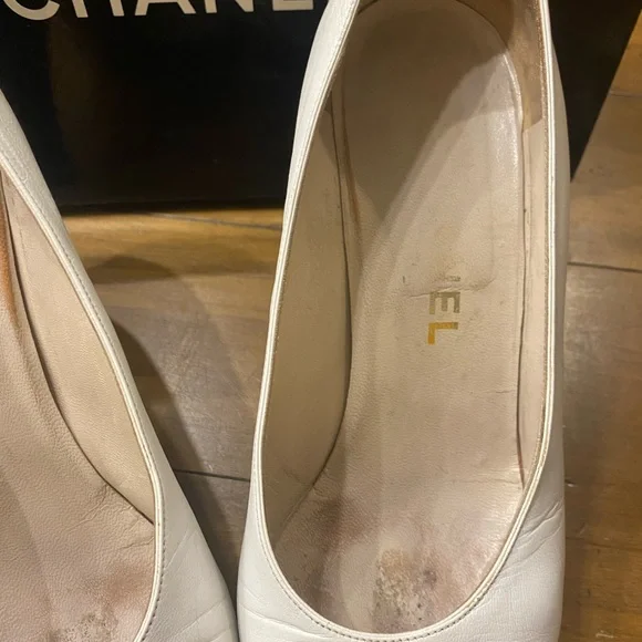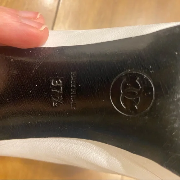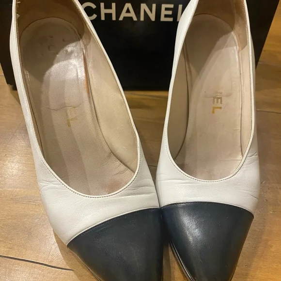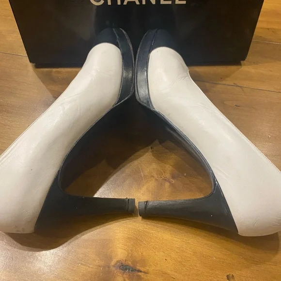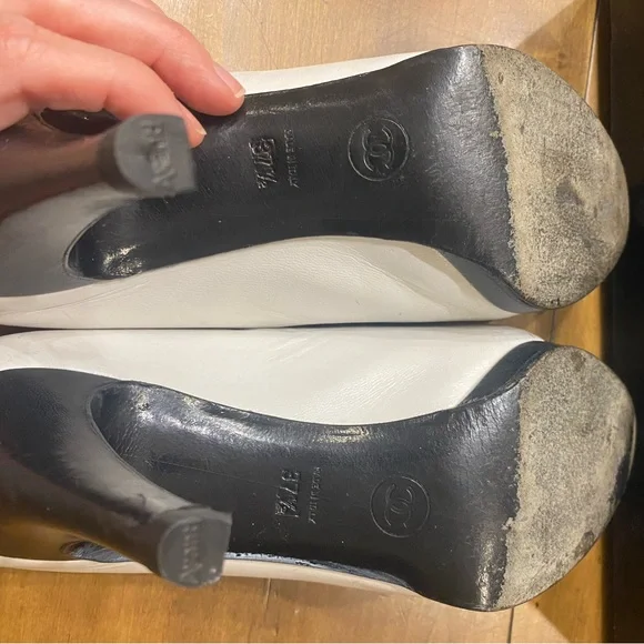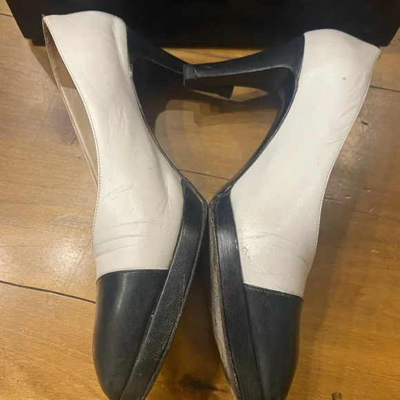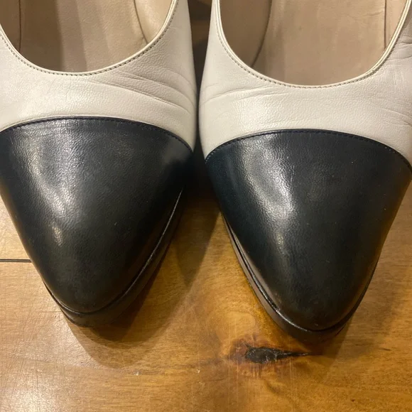 Shoe White Pump Black Detailed Round Patent Toe Heel Size 37.5 EU W Box