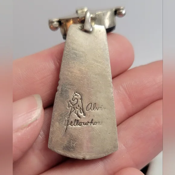 beautiful vintage pendant by Alvin Yellowhorse.Silver and I believe shell and onyx.