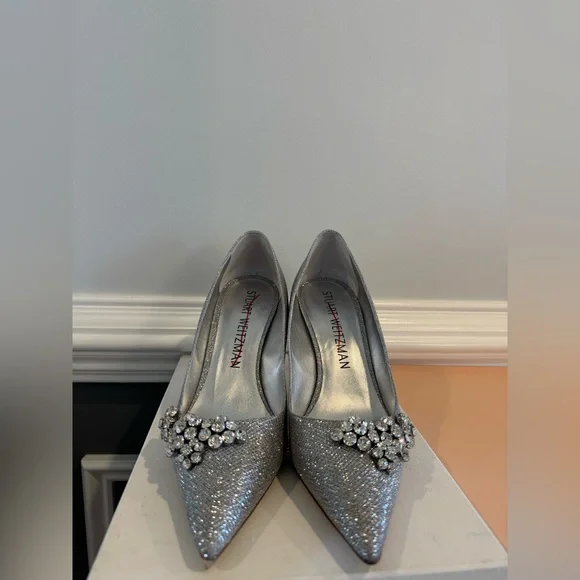 Storedisplay only!Stuart Weitzman´s Crystal Fleur 85 pumps are crafted in Spain and feature a leather lining for added comfort.Point toeSlips onTextile upperLeather liningMade in SpainSIZEStiletto heel: about 2.4" (60mm)All of my items are 100%guaranteed authentic .please read all the details and check the pictures before you buy the itemthese items are either store display , store return, some are brand new or have been used for a model show,the items have a black line or red lineon label to prevent a return to the store for original pricePlease ask me any question you have , thank you
