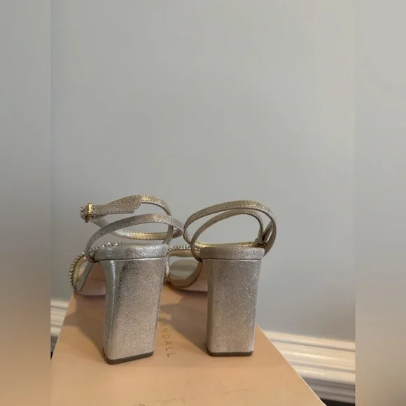 $495 LOEFFLER RANDALL Shay Wrap Sandal In Metallic Silver size 6.5