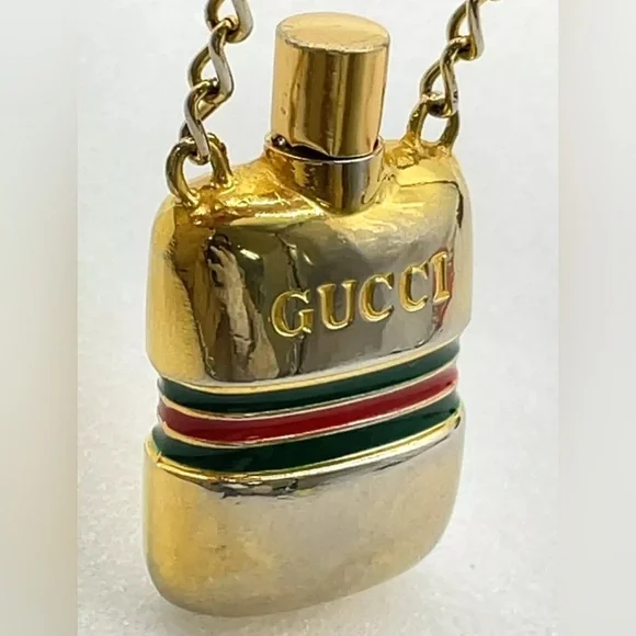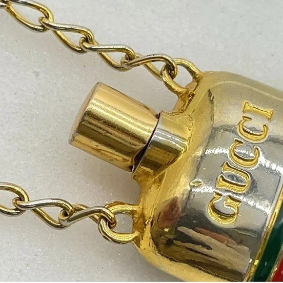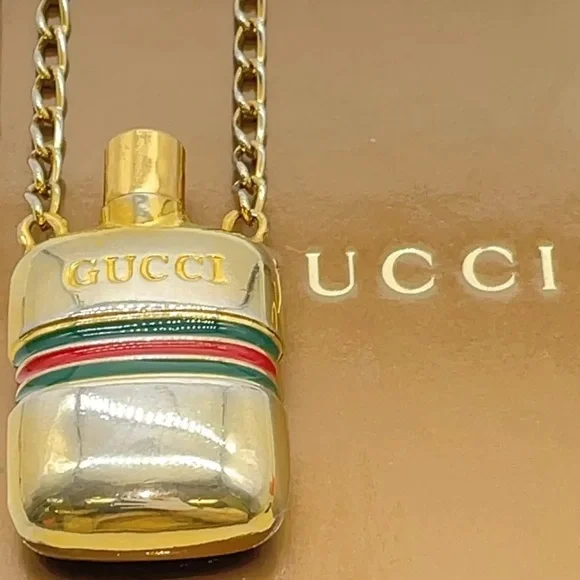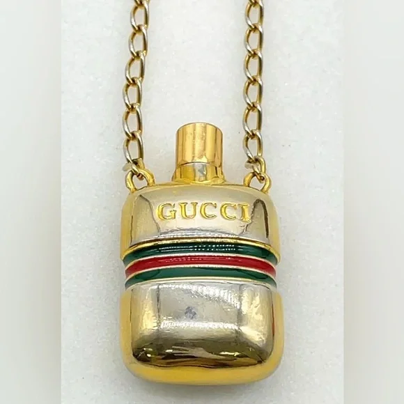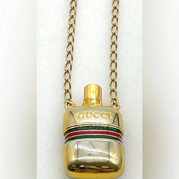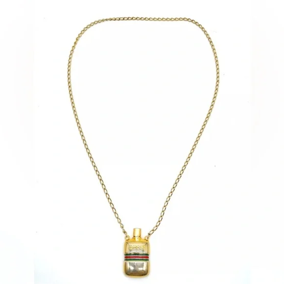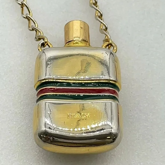 Elevate your style with this exquisite Sherry Line Perfume Bottle Pendant Long Necklace. The necklace features a beautiful gold-plated chain and a unique perfume bottle pendant that adds a touch of elegance to your outfit. The pendant is designed to hold a small amount of your favorite perfume, making it a great accessory for any occasion.Crafted in Italy, this necklace is of the highest quality and is sure to make a statement. The necklace is 30 inches in length and has a lobster clasp closure. It comes with an original box for safekeeping. Add this authentic necklace to your collection today and experience the luxury of this renowned brand.Style:NecklaceColor:Gold platedMaterial:Gold Metal,silverSize (cm):Length : 37 cm Pendant L 2.5x4.5 (Approx)Size (inch):Length : 14.57 inch Pendant L 0.98x1.77 inch(Approx)Made in:Italy#100990