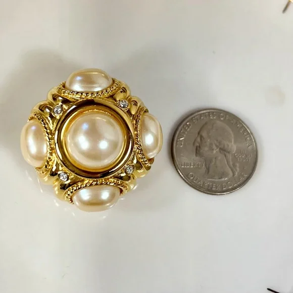 Givenchy Couture Large Pearl & Crystal Clip-On Earrings