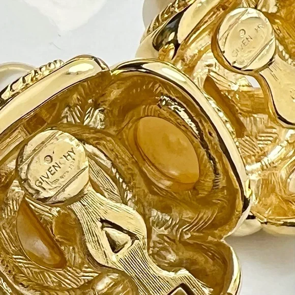 Authentic Givenchy Couture Large Pearl & Crystal Clip-On Earrings crafted from gold toned hardware with clip-on backings and featuring large pearls with 4 tiny Swarovski Crystals at each corner. They are engraved on the back side of the clips and are in excellent condition. Please observe all photos. •Offers Welcome